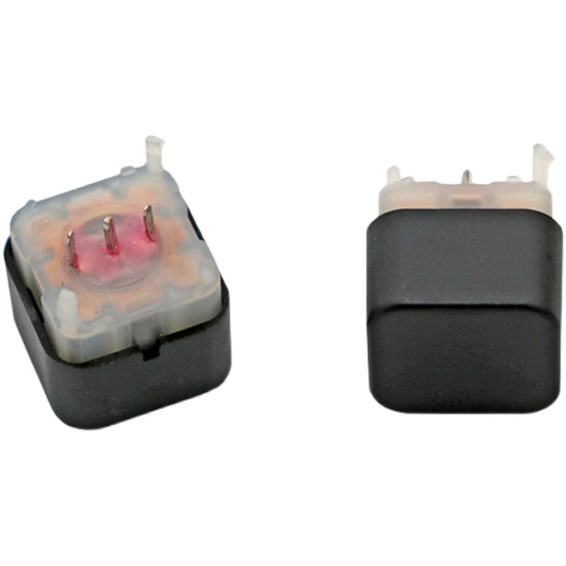 兩段式操作,三只引腳輸出,一個按鍵分為兩個行程,第一行程為公共腳同1號腳導(dǎo)通,第二行程為公共腳同1號腳、2號腳同時導(dǎo)通。外形尺寸12*12*10mm,引腳間距2.5mm。