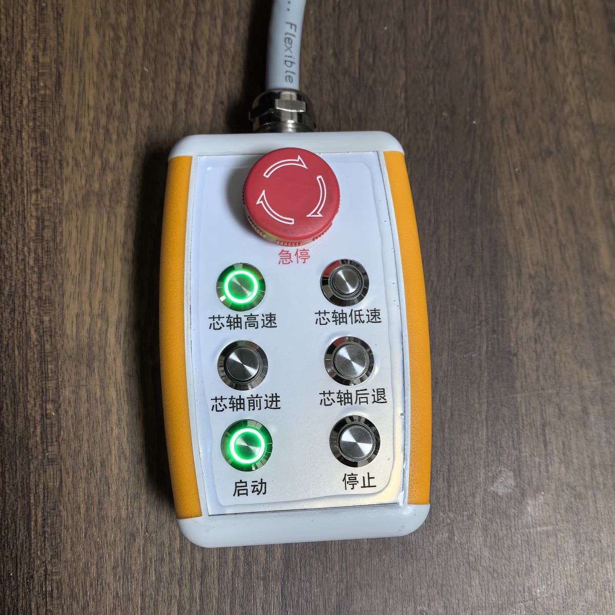 鹽城瑞久機(jī)電科技有限公司可以為客戶定制各種機(jī)械設(shè)備、機(jī)器人線控操作手柄,控制面板布局、元器件(按鈕、旋鈕、撥動(dòng)開關(guān)、多檔開關(guān)、船型開關(guān)、搖桿等)選用、輸出形式(開關(guān)點(diǎn)、電位器、脈沖信號(hào)等)都可以定制哦!還可以做指示燈顯示??梢愿鶕?jù)要求匹配適合長(zhǎng)度的拖線電纜。